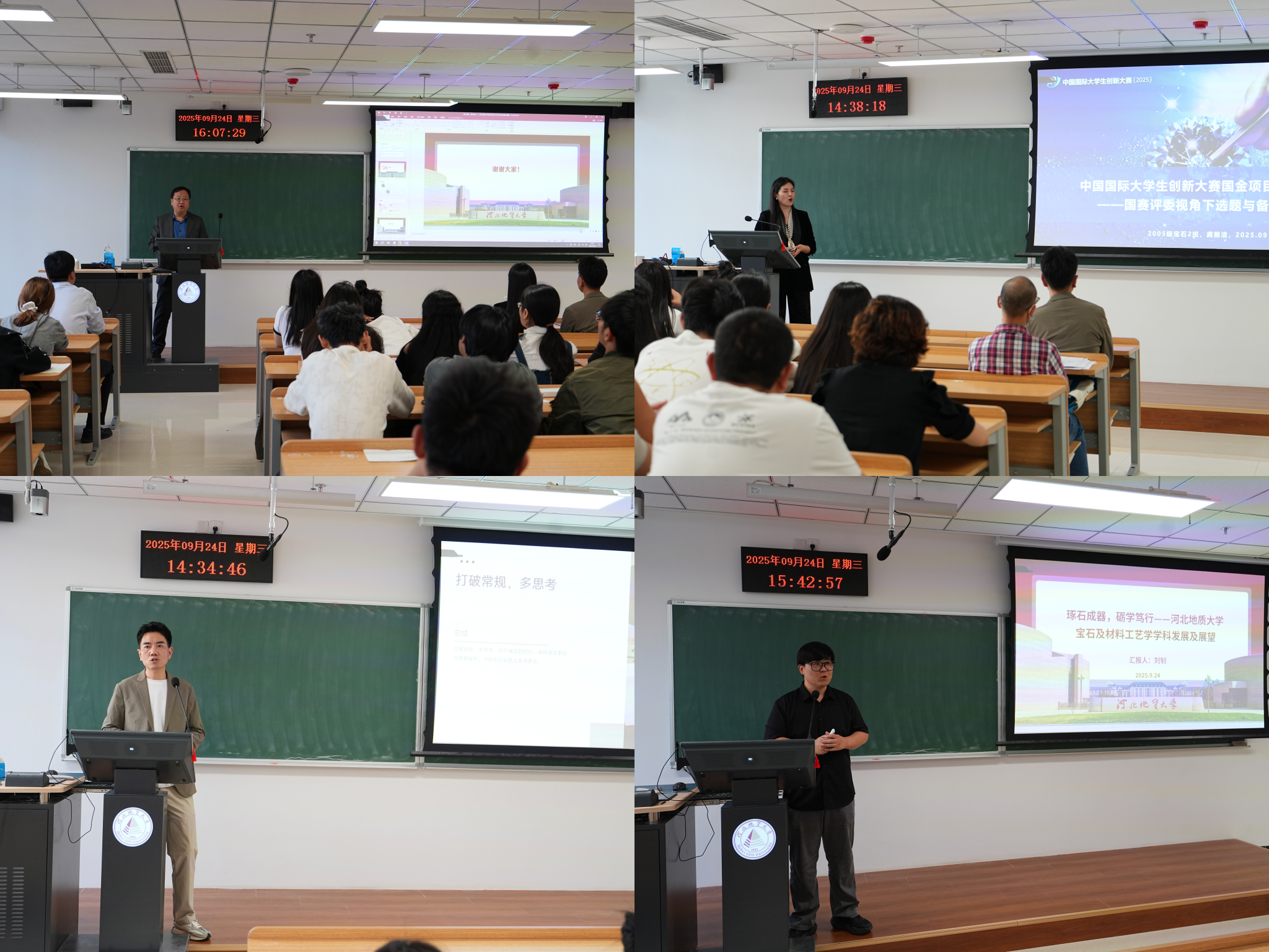 下午,在教学一号楼306教室举行了专题报告。身处行业一线的校友站在母校的讲台上激情演讲,130多名师生到场聆听。王川校友以自身丰富的创业实践为脉络,以“大学生创业如何破冰”为题,深度讲解了如何选定创业方向、稳固客户群体等。龚雅洁校友从国际大学生创新大赛评委专家的专业视角,为师生们细致拆解创新大赛的“制胜密码”,从评选标准、选题技巧、备赛核心及赛事流程细节等方面清晰阐释,并辅以实战案例,让抽象的赛事变得具体可感。