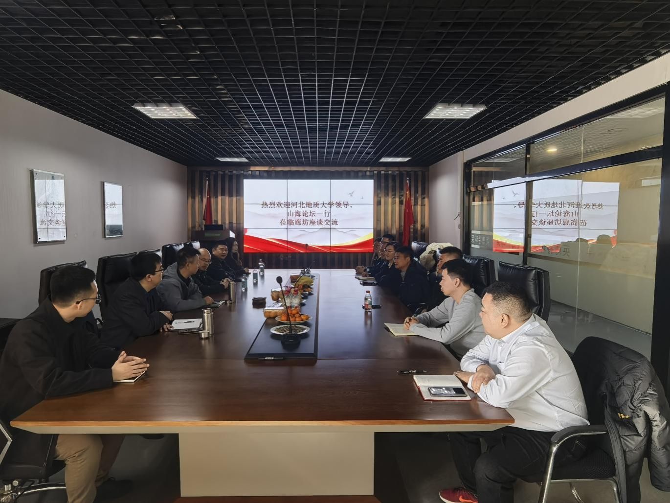 校友们纷纷分享各自在工作岗位上的奋斗历程与成长感悟,言语间满是对母校的眷恋。大家围绕职业发展趋势、行业人才需求、校企合作路径等话题畅所欲言。同时,双方重点探讨山海论坛廊坊分论坛筹备事宜,刘峰、王东海结合论坛组织章程,就分论坛架构搭建、活动策划等提出具体指导意见,期望以论坛为纽带,进一步凝聚廊坊校友力量,搭建校友交流合作、反哺母校的坚实平台。