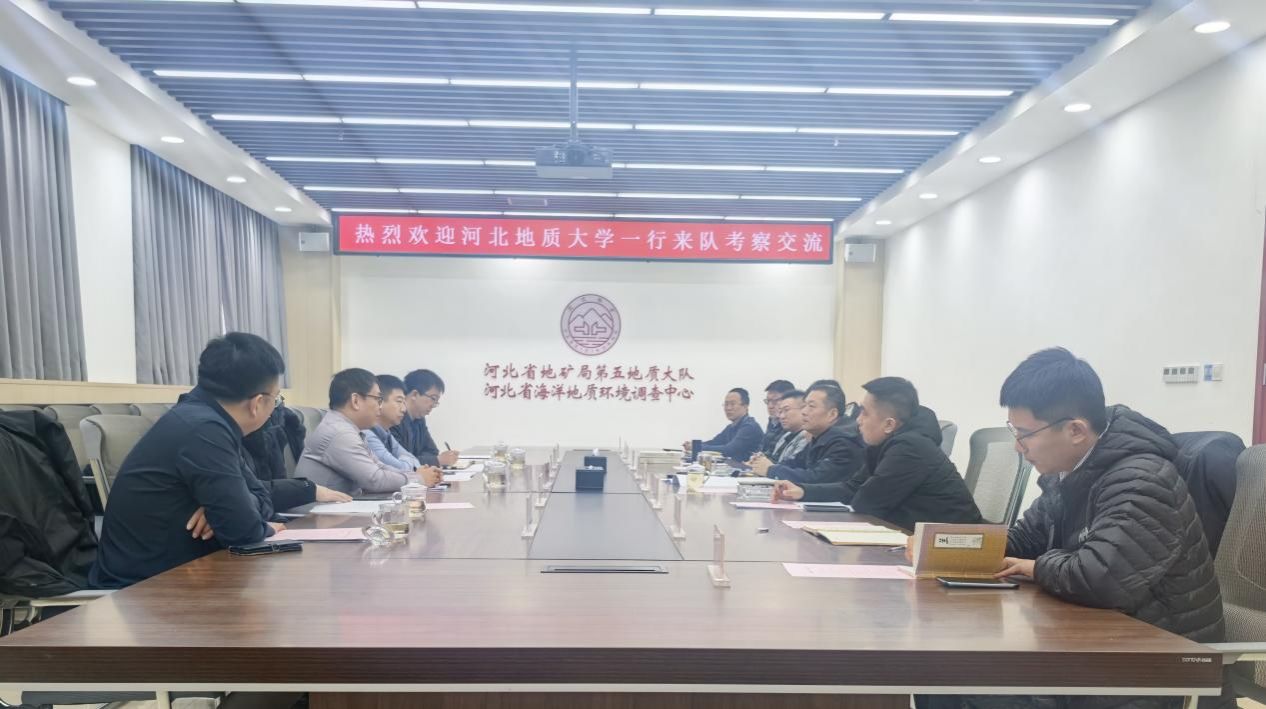 队长邢运涛、副队长金双等校友代表热情接待,详细介绍了地质五队在地质勘查、海洋地质环境调查、生态修复等领域的显著成果。座谈会上,邢运涛进一步介绍了地质五队的基本情况及与我校合作的丰硕成果,袁颖也围绕学院的师资力量、学科优势等情况进行了分享,王东东对地质五队长期以来给予我校校友的悉心培养、成长关怀与发展平台表示衷心感谢。双方就联合申报科研项目、共享科研设备、校外导师聘任等议题深入探讨,达成多项新共识。走访团表示,将以此次走访为契机,进一步推动校队合作走深走实,实现“优势互补、共谋发展、互惠共赢”的良好局面。